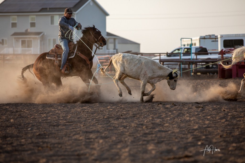 I ran into a friend I used to rodeo with back in the day, Baylor Roche. I got to talking to him about when they would be practicing so I could invite myself to come and take some photos. I had a great time watching the guys wrestle around in the dirt with an animal that doesn’t want any part of it. It brought back a lot of memories I haven’t thought about for awhile. It’s been ten years since I last threw one down. And part of me was missing it after watching them. They asked me if I wanted to throw some down for old time sake, I declined. I’m pretty sure if I did I would be in the corner of the arena throwing up for being so out of shape!